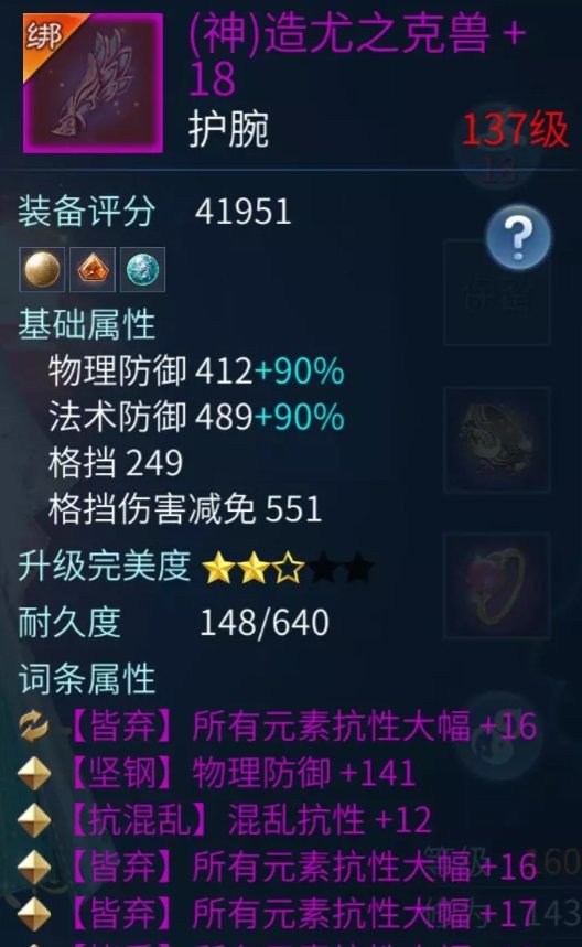 副手:所有元素抗性大幅或者格挡,这边分开做二套装备词条打造最好(一套元素抗、一套格挡)
