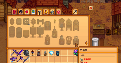 以上就是《星露谷物语》里产油机的玩法介绍。当玩家在外出探险过程中,缺少体力和生命值时,就可以用产油机制作大量的恢复道具。