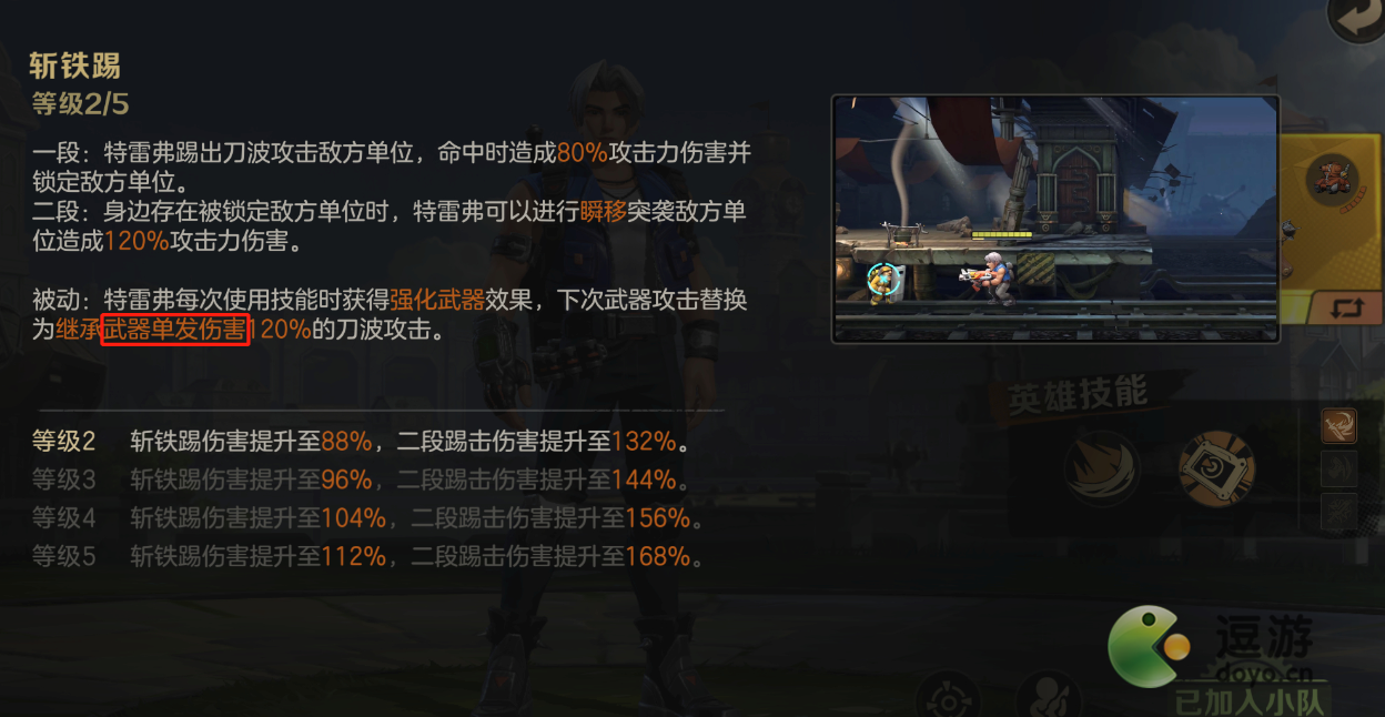2、先仔细观察人物技能说明,查找出所有属性强化的词条
