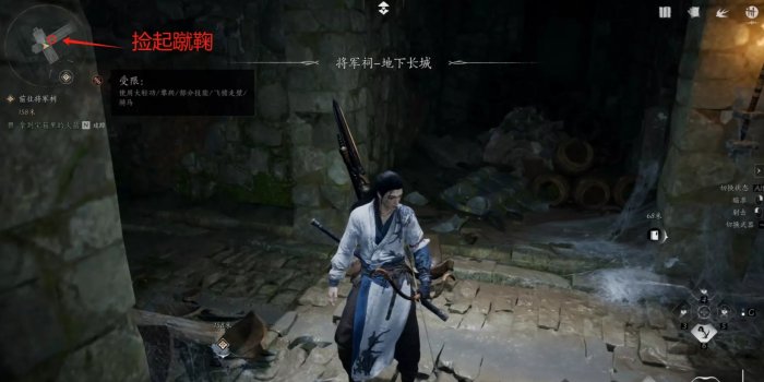 站在旁边裂开的地板上跳起后按【Q】千金坠,可以击碎地板,进入将军祠密室【地下长城】。