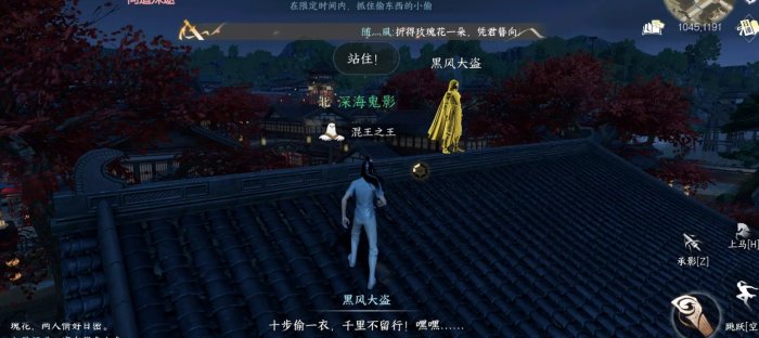 晚上子时后在图示汴京1045.1191房顶上抓贼完成后获得钱袋,提交到“石良工” 汴京1098.1196