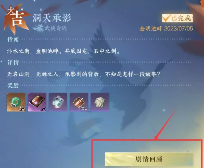 在奇遇列表中找到大吉奇遇·洞天承影,点剧情回顾再点梦回,进入任务场景,这里面还有数个宝箱
