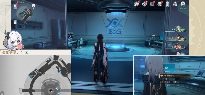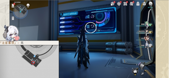 (1)来到禁闭舱段2层南部,使用不同身高的角色,调查这个大屏幕即可