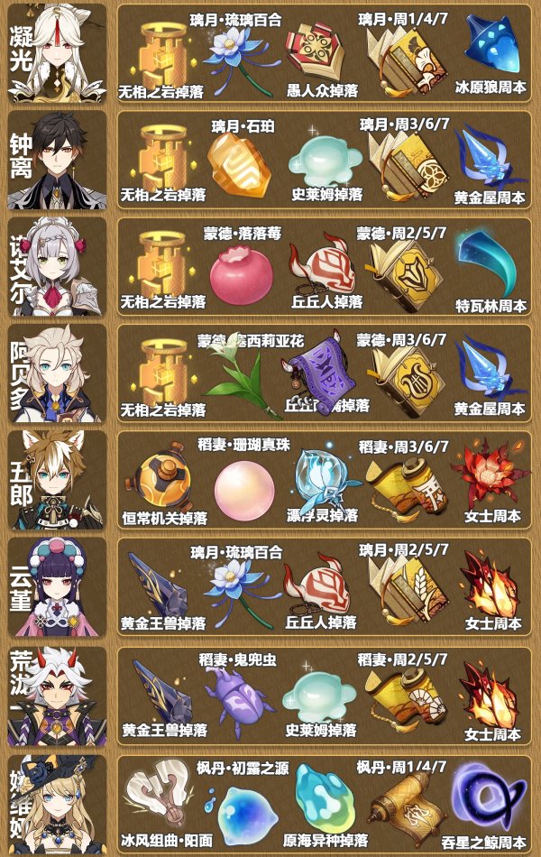 《原神》全角色所需材料一览 4.3最新全角色培养素材图鉴