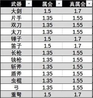 属性会心补正:属性会心和真属会心的补正,属性版会心,与会心补正不同的是,属性会心补正不同的武器有着不同的补正倍率。