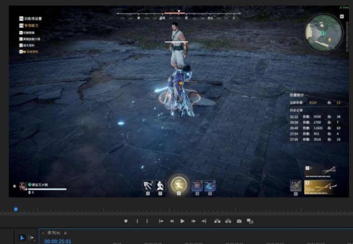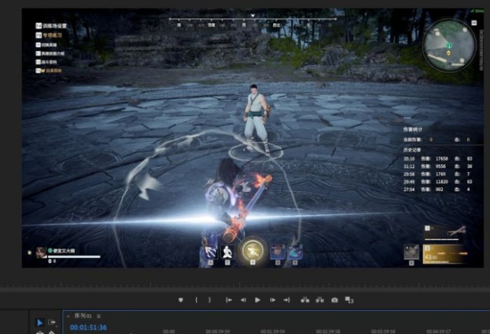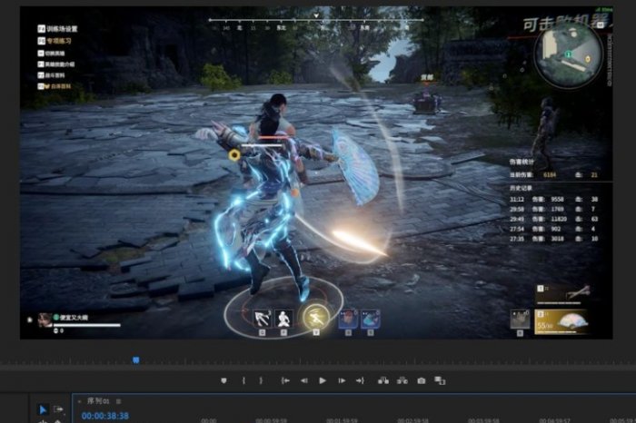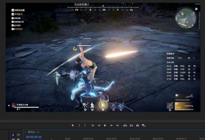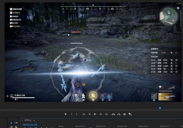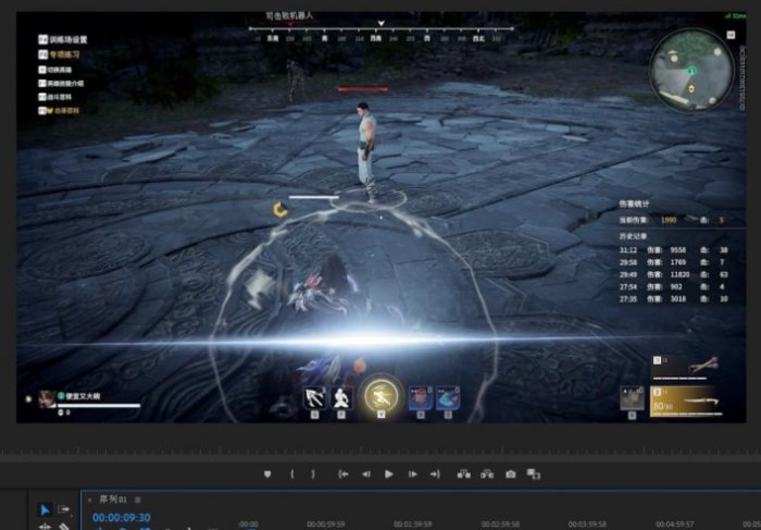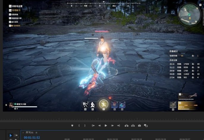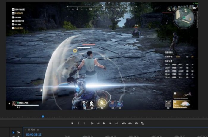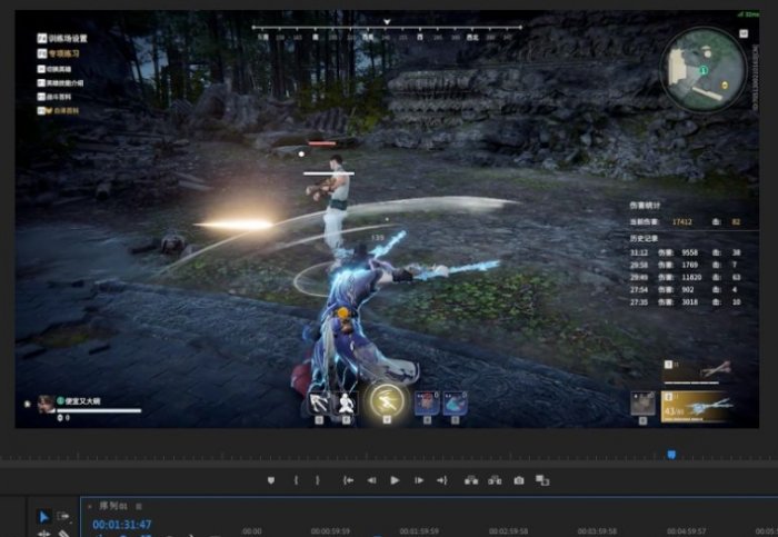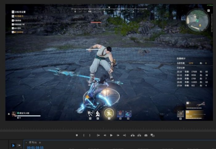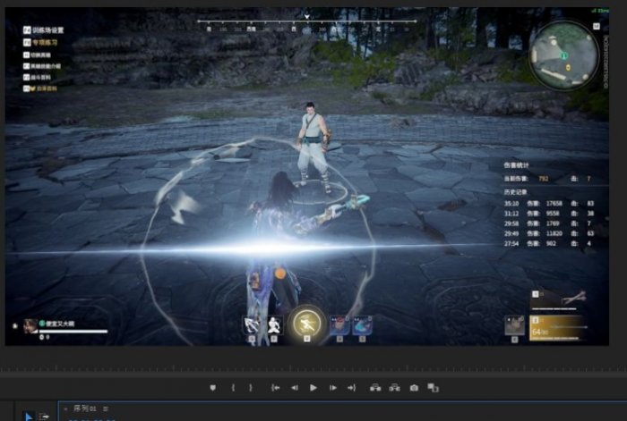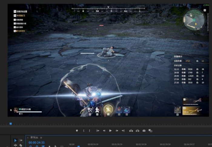 想要让一个蓝霸体招式能被目押,肯定需要在招式打到人之前预留足够正常人类反应的时间,而想要让大部分玩家能应对,这个反应时间至少也需要在人类反应速度较为集中的200ms左右,加上延迟和思考时间,少说也需要250ms,如果招式从出招预警到发生判定的时间压缩到了250ms以内,普通人就很难反应过来了。用一个简单的办法就能直观的看出不同招式间速度的区别——用pr打开视频,观察从蓄力发生到伤害产生所需要的帧数,我使用的是60帧常速视频,可以大致反映出各种招式的速度(下面用同源武器枪和棍举例)