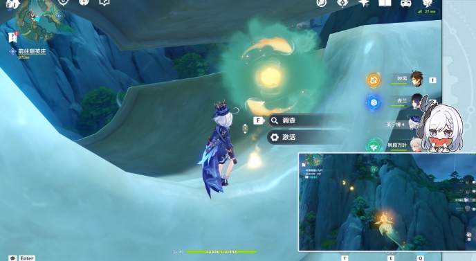 5.洞窟里可以看见1个苍灵鲤,1个华丽宝箱和3个清水玉