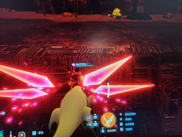 跑到禁区二层类似大铁门的地方的正中间,骑上飞行帕鲁,往外拉。