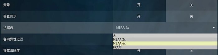 渐晕和垂直同步建议关闭,抗锯齿至少开2x,抗锯齿对看对面太重要了,开的越高对面轮廓越清晰,看着多舒服一点更好瞄准一点。