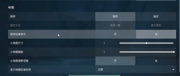 地图开启旋转,关闭保持玩家居中,小地图视野范围开,这样能大大提高对局时看地图的体验,对比来看居中会错过一些地图外的标点。