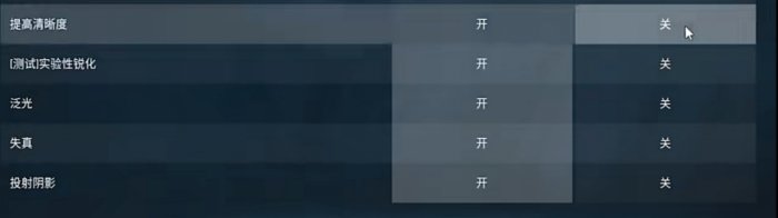 提高清晰度推荐开,锐化开启,泛光和失真影响皮肤的质量,对皮肤颜值有要求的玩家可开启,投射阴影推荐关闭。