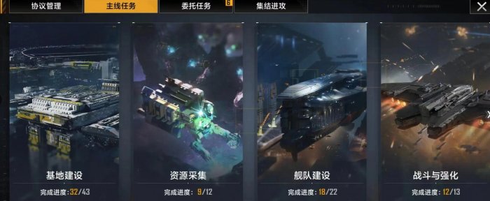 在游戏前期,玩家需要完成各种各样的任务,比如收集物品、对接、打击海盗等。这些任务不仅能够帮助玩家提升战斗技能,还能获取部分资源、电子币等奖励。此外,每天更新的两个电子币箱也有机率开出蓝图。