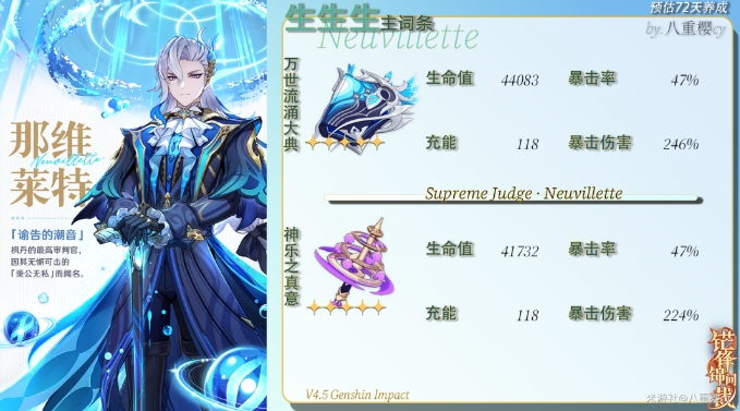 《原神》那维莱特0-6命面板 那维莱特毕业面板属性参考