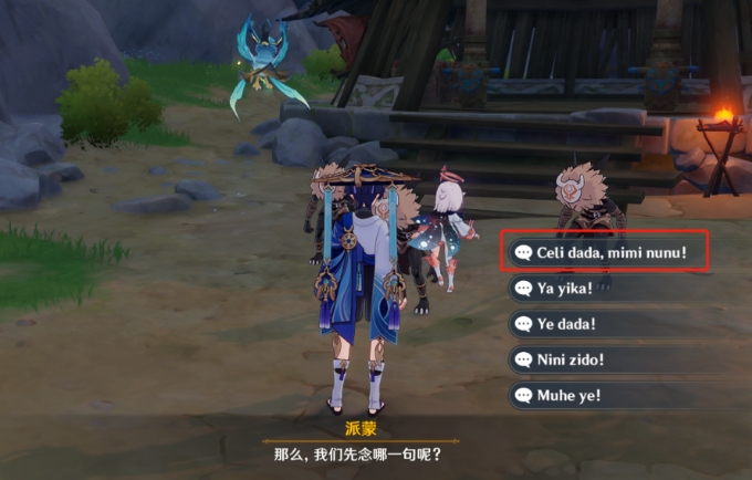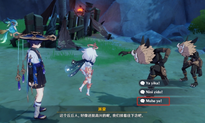 对完话,她会让我们去和丘丘人交流,下面我们选择的几个都是表示友好的意思。