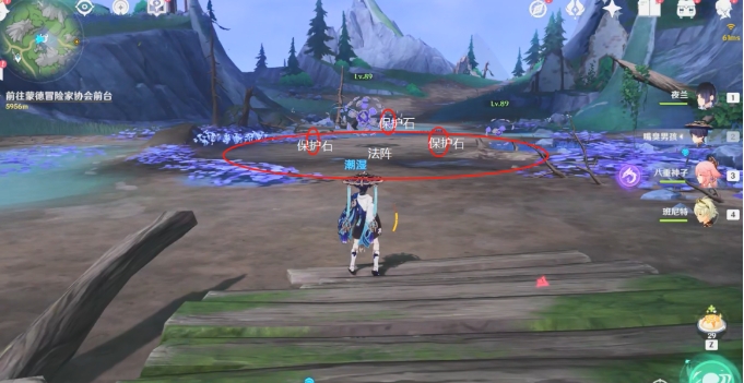 2.我们往东北方向看就可以看见流血狗+大法阵啦、需要我们保护三个石头不被打破,一共会出现5波流血狗;