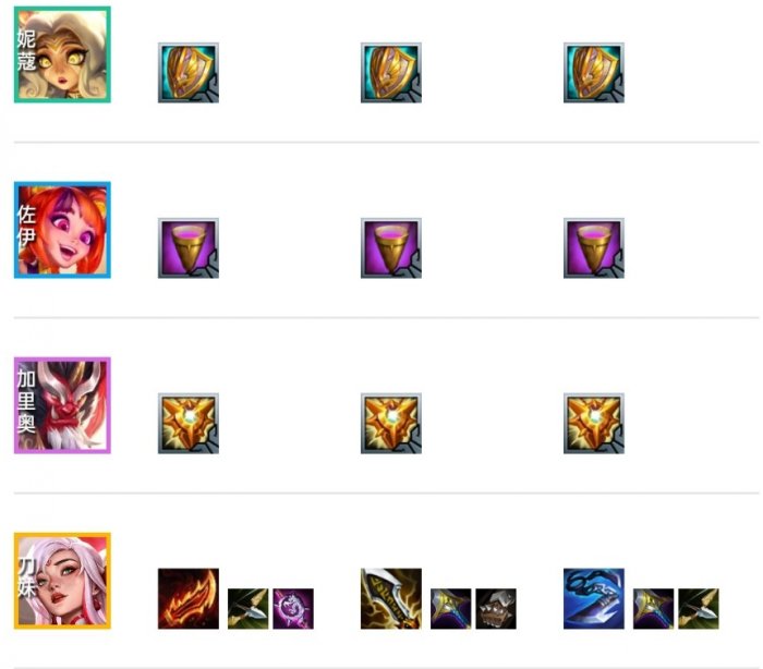 妮蔻:军团圣盾+军团圣盾+军团圣盾。