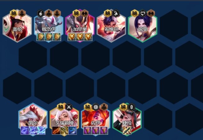 4-2拉8人口,然后大刷一波,将阵容体系大部分英雄搜出两星,并找出艾瑞莉娅开7剪纸仙灵。8人口需要将加里奥搜出两星,之后再上9人口。