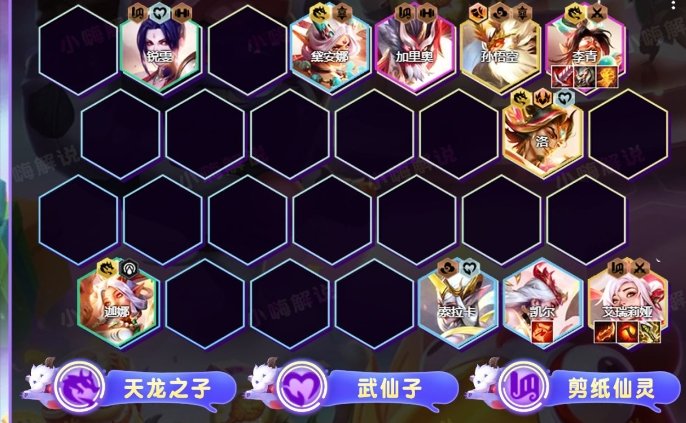 阵容羁绊:4天龙3剪纸3武仙子2决斗2圣贤2天将2斗士