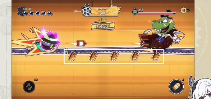 选择第一关,通过拾取子弹进入强化模式,发射子弹击败石头老板(不要使用左键反弹子弹即可)