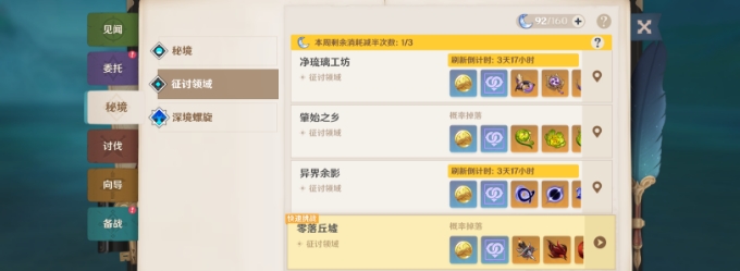 1.打开冒险手册,在征讨秘境可以直接挑战,选择最低难度