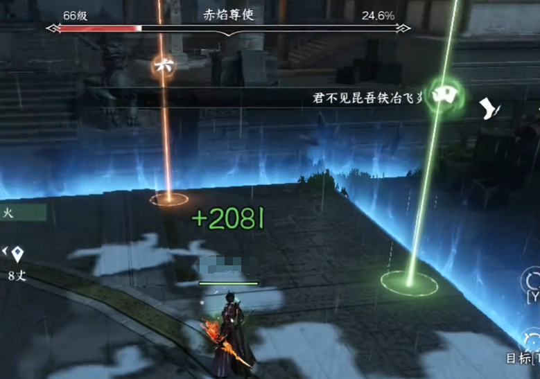 需要在柱子边上等待boss追踪吃掉一套技能,马上解控上马围绕外圈开跑,被控后使用减伤减少伤害。推荐技能:荒城剑气或者碧云问笛,可以在被击飞后使用。