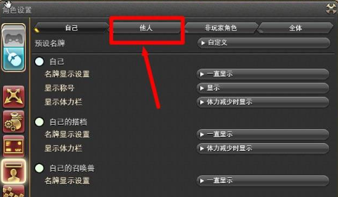 2、点击名牌设置后在最上面一栏点击他人选项。