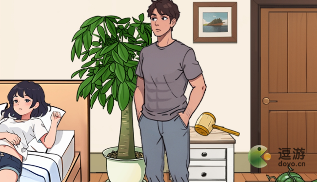 5、拖动木槌到男友前方的地板,敲破地板出现生可乐