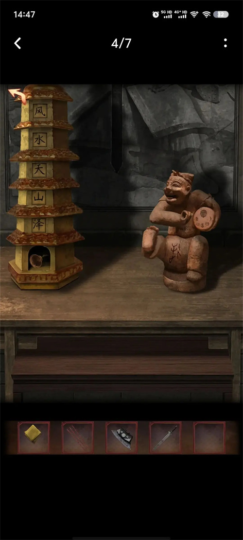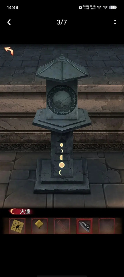 2.图三图四点燃石灯,调整图案,得到剑,把剑放在石像里,得个小神像。