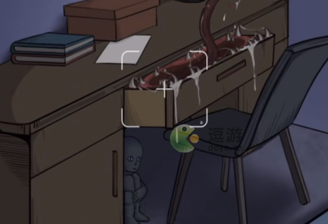 4、再次点击REC字样切换场景,桌子下有躲藏的孩子,点击中间抽屉找到怪物