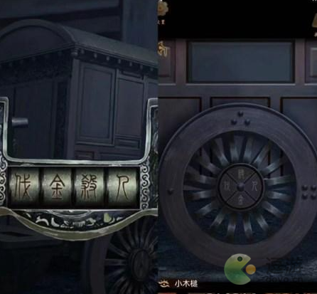 11、左边马车轮子放入【木制轮毂】打开马车门上密码锁,得到【花猪头】放供桌上