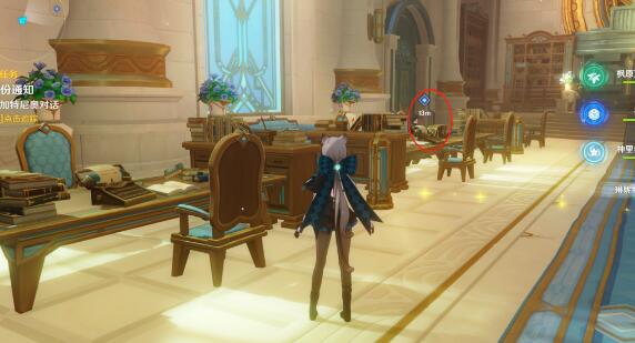 3.进入图书馆后,直走,再进一个门,找到在左侧的npc艾尤恩对话,接取任务:一份通知;