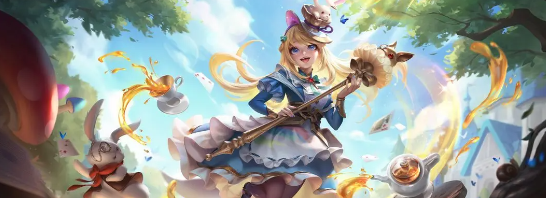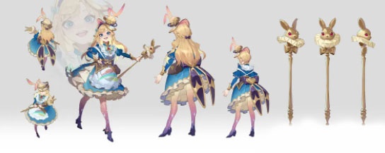2、角色形象带有童话风格,爱丽丝身穿蔚蓝白裙,手持兔兔拐杖,闯荡并参加童话世界的冒险。