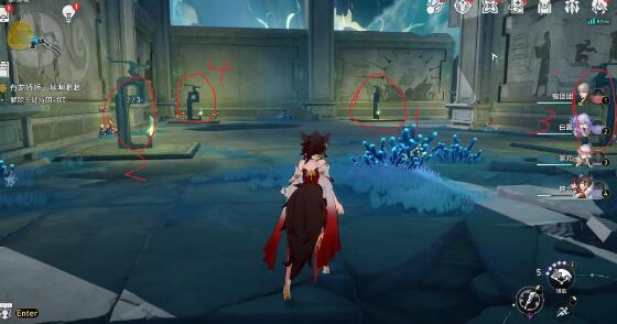 此处的解密提示为每个封印下亮起的蓝色区域,亮一个极为第一个点亮,亮二个为第二个点亮,依次类推。