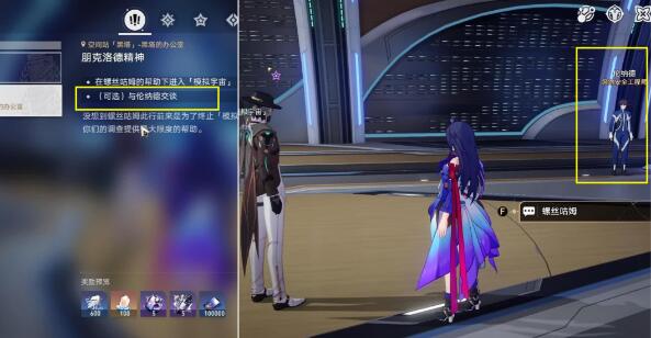 (7)然后去下图【主控舱段】黑塔办公室找【螺丝咕姆】对话后,开启【模拟宇宙】副本挑战,很简单,大家跟着指示走即可完成