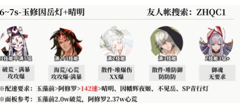 1、阵容一:6~7s-玉修因岳灯+晴明