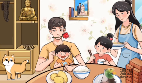 1、疯狂梗传开席啦5,首先爆米花:拖动男人嘴上的花到米饭上