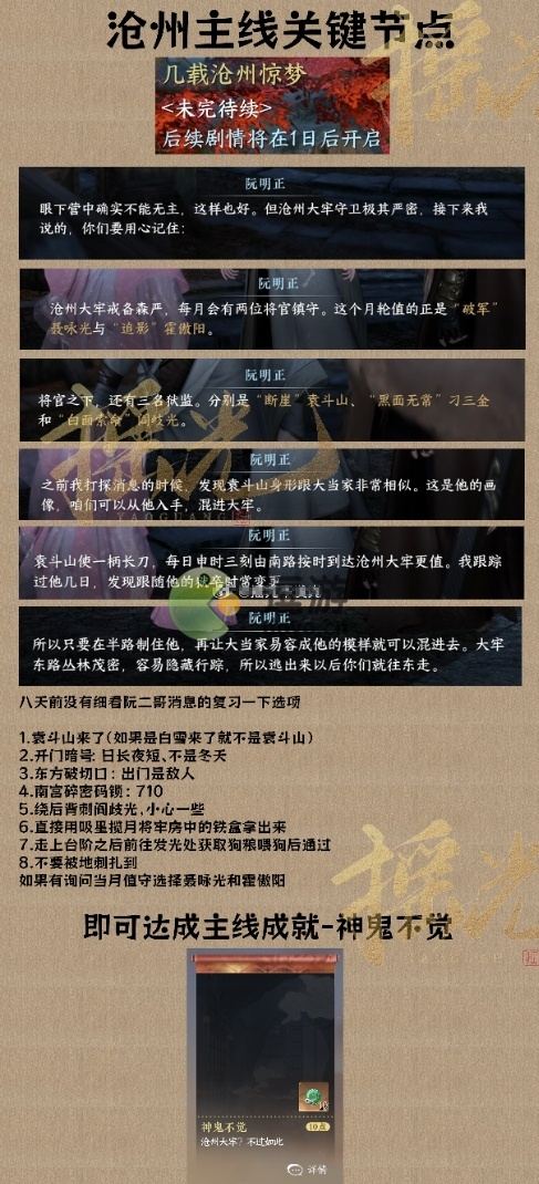 1、救出楚湘玉后的铁索桥QTE环节可以长按开盾,不需要点按,保护楚湘玉时乌云会受伤断骨