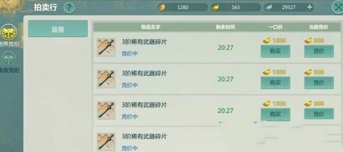 2、摆摊:主要是将自己没用的东西进行出售,速度会比拍卖行更快,但价格略低。