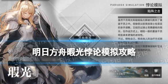 明日方舟暇光悖论模拟怎么打?明日方舟在12月7日更新后实装了六星重装暇光的干员密录以及悖论模拟关卡,那么暇光的悖论模拟关卡陷阵之志该怎么打呢?接下来就让我们一起了解一下吧。