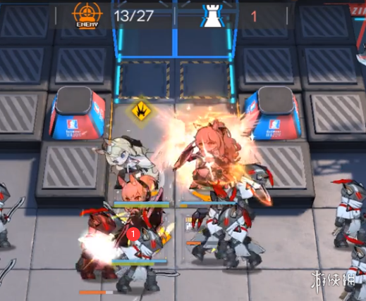 2.如下图所示源石虫来到正面,下一波士兵和暇光交战后开启暇光技能清怪(不能开太早)。