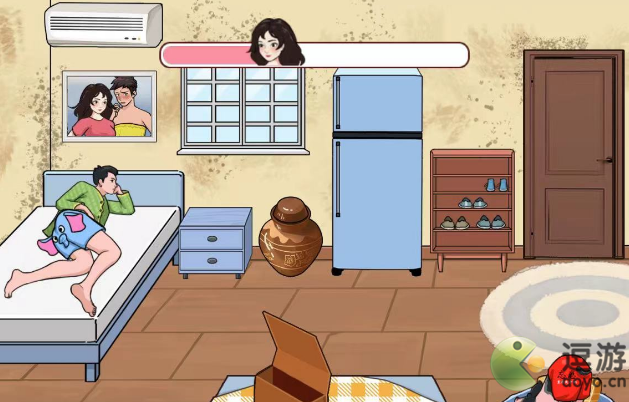 4、右滑鞋柜,拖动衣服到鞋柜后