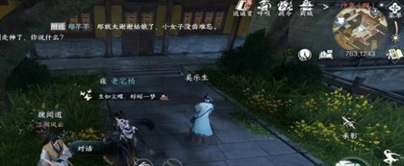 1、玩家前往到汴京(763,1243)和NPC吴乐生对话。
