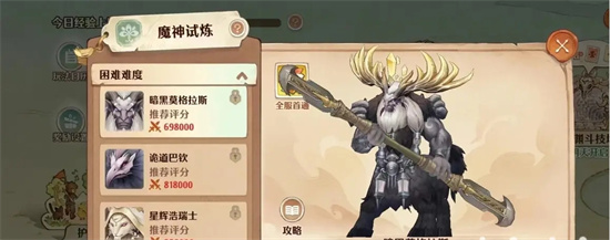 因为难度太高,所以推荐大家一起下,也可以请人帮忙,但是必须要有足够的战斗力才行。而暗黑莫格拉斯,则是六十九万八千战力。玩家们可以根据自己的实力来决定团队的组成,两个近战、两个远程、一个治疗。如果能拿到第一场胜利,就能得到金卡碎片、幻影之尘之类的东西,那就值得一试了。他的技能和生命值都比莫格拉斯多,所以他的攻击力也更强。不推荐使用,但如果你的实力超过这个数字,就可以使用,但你要小心,不要被 AOE技能击中。
