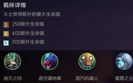 2.纯坦度羁绊,简单粗暴直接增加斗士棋子血量。如6斗士直接增加所有棋子900生命值,但通常一个2星棋子血量也就1000左右,血量直接翻倍,收益特别高。