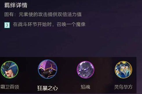 元素使羁绊有4枚棋子,3枚棋子就能触发羁绊特效,无拥有转职道具。