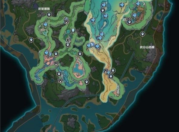 2.枫丹延区地上水神瞳共23个,部分有解密传送门可以直达。