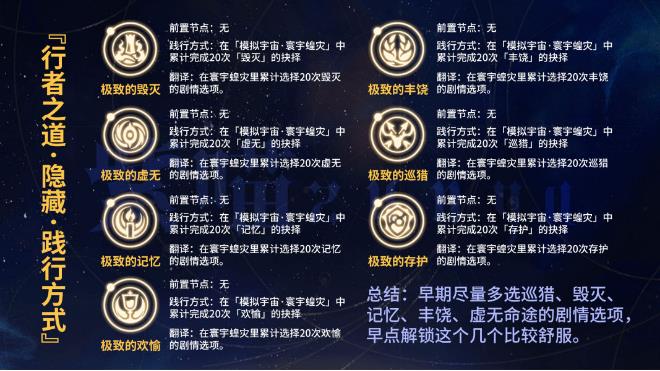 这几个没有前置解锁条件,但践行方式被隐藏,需要完成后才能知晓方式