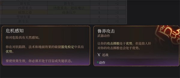 2、二级技能,鲁莽打击和危险感知都是很实用的技能,增强输出并且有一定法抗。