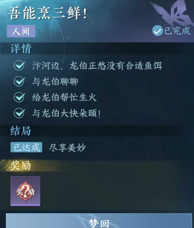 《逆水寒手游》人间任务吾能烹三鲜任务攻略