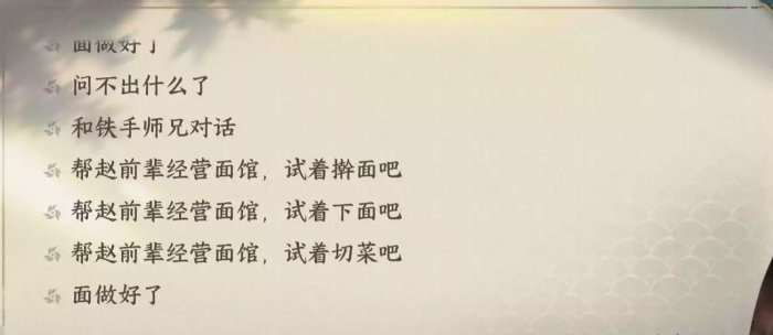 4、吃完面后铁手师兄会过来,与他对话并帮老人做面即可完成本任务